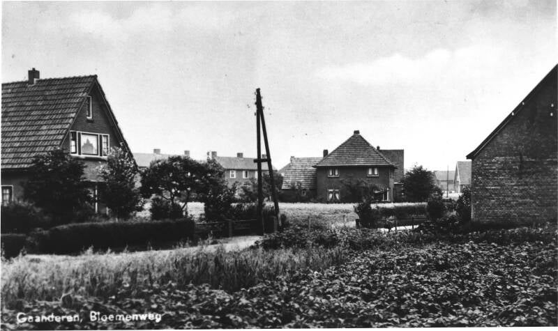 1930: Postkantoor annex kruidenierszaak van Bongers aan de Rijksweg hoek Vulcaanstraat. Het fraaie pand werd in 1966 afgebroken.
