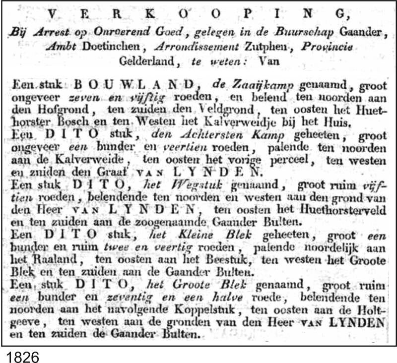 1828: Te koop in het buurtschap Gaanderen.....