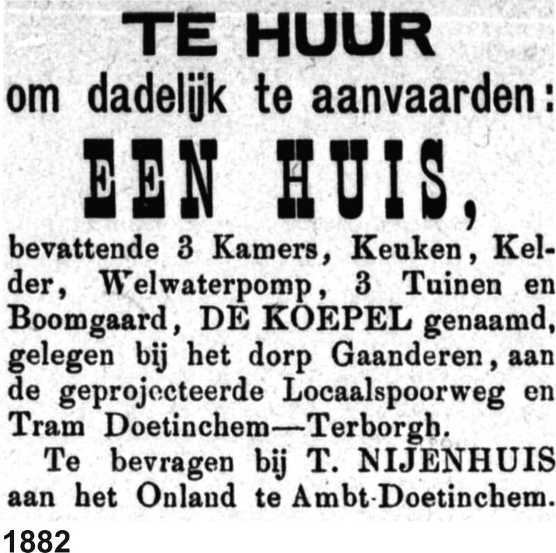 1882: Huis 'de Koepel te huur'.