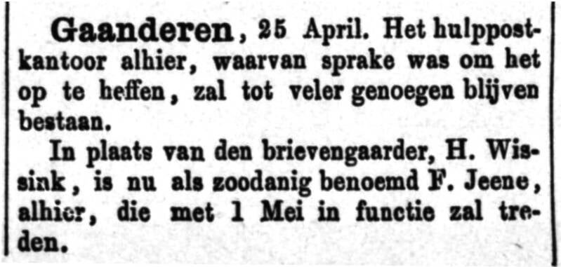 1882: Noodkreet voor behoud hulppostkantoor.