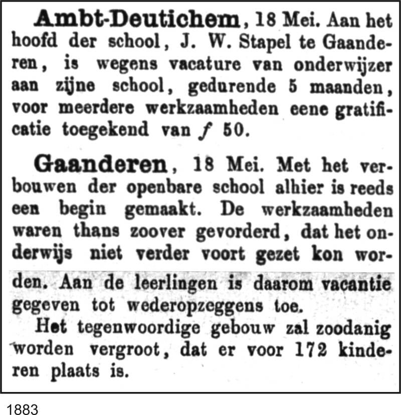 1827: Het bouwen eener school voor de buurtschappen Gaanderen en Oosseld.