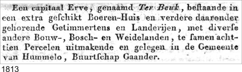 1813: Capitaal Erve, Ter Beek te koop.